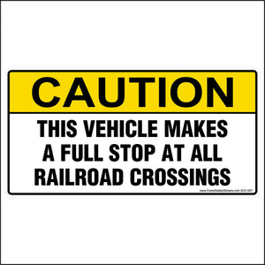 This Sticker is Printed with the words, Caution This Vehicle Makes A Full Stop At All Railroad Crossings.