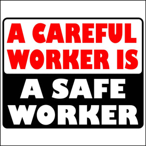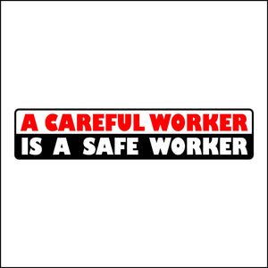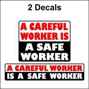 This A Careful worker is a safe worker Sticker Is 2 1/2 inches by 2 inches and the other is 3/4 inches by 3 3/4 inches in size.
