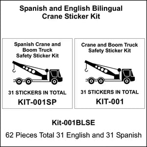 This Bilingual Crane Safety Kit combines our Kit-001 and Kit-001SP at a 15% discount. We do it this way to save you money, and you will be able to apply the safety stickers anywhere you need. You can have side-by-side English and Spanish safety stickers, or English and Spanish safety stickers above and below.