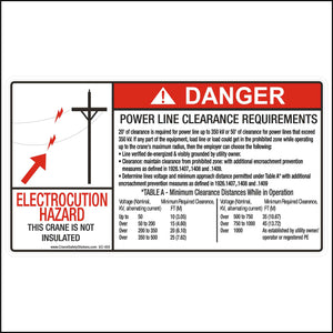 2 - Sign-001 Operate Safely, Power Line Clearance, Two Block & Do Not Hoist