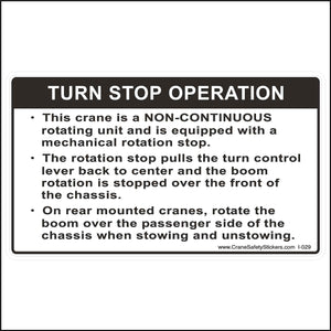 The Crane Turn Stop Operation Label size is 8 inches wide by 4 1/2 inches tall.