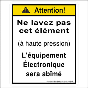French Do Not Power Wash Crane Labels size 4 inches wide by 5 inches tall.
