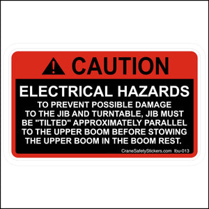 If you need a different Jib and Turntable Jib Must Be Tilted Parallel to the Upper Boom Before Stowing Sticker size contact us we would be happy to create a decal for you.