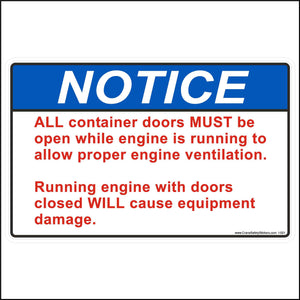 All Container Doors MUST Be Open While the Engine Is Running is needed when the engine of your machine or generator is enclosed in a container.