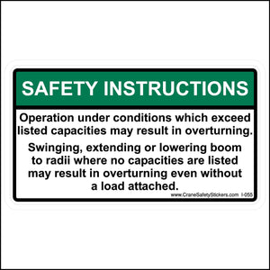 Operation under conditions which exceed listed capacities may result in overturning. Swinging, extending, or lowering boom to radii where no capacities are listed may result in overturning even without a load attached.