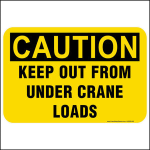 Caution Keep out From Under Crane loads Safety Decal size is 12 inches by 18 inches.
