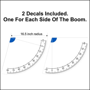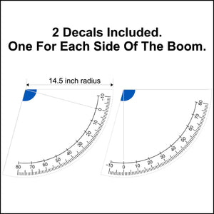 You are buying our crane angle indicator decals printed with angles from -10 degrees to 80 degrees. Each decal has a light grey 90-degree placement line for reference to make installation quick and easy. The Blue portion is removable and made to be discarded when applying the decal to the crane boom.