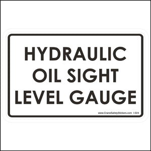 Hydraulic Oil Sight Level Gauge Label size is 4 inches wide by 2 1/2 inches tall.