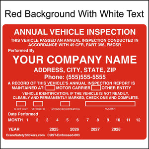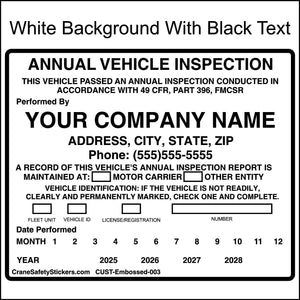 This embossable aluminum Vehicle inspection sticker can be easily embossed with a ballpoint pen or even a typewriter.