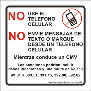 Spanish No Cell Phones While Driving a CMV Commercial Motor Vehicle Label