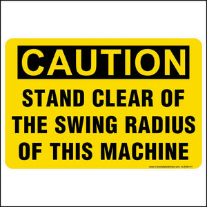 This Caution, Stand Clear of the Swing Radius of This Machine Sticker is for rough terrain cranes.