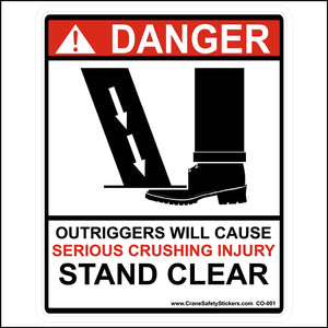This outrigger crush sticker can also be called a stabilizer crush sticker. One sticker should be placed on each outrigger or stabilizer. A sticker is also placed on the SFO, single front outrigger if your crane is equipped with one.