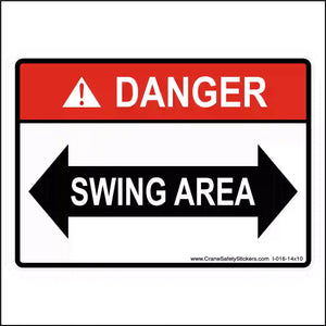 This safety decal is printed with the text: DANGER Swing Area (with Arrows).
