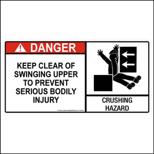 You are buying our easy to peel and stick safety decal printed with Danger Superstructure Rotation Counterweight Crushing Hazard.