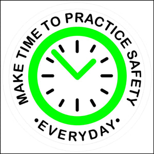 Hard Hat Sticker Printed with Make Time To Practice Safety every day.