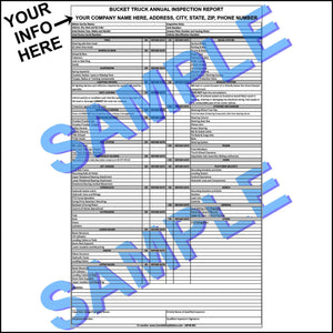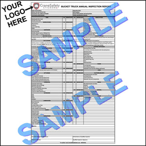 This custom annual bucket truck inspection report pairs well with our Custom Annual Crane Inspection Stickers.