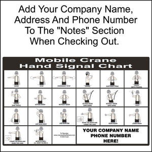 Custom Hand Signal Chart for crane operation Chart Size Is, 14 inches wide by 8 1/2 inches tall.