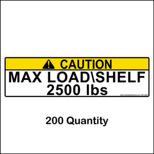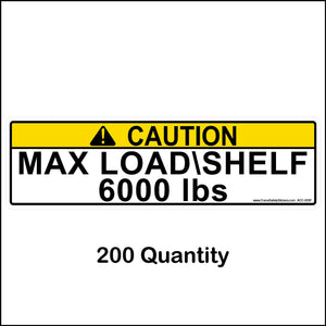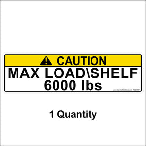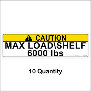 These Pallet Racking Max load shelf stickers are 3 inches tall by 11 inches wide.