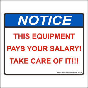 NOTICE This Equipment Pays Your Salary! Take Care Of It!!!