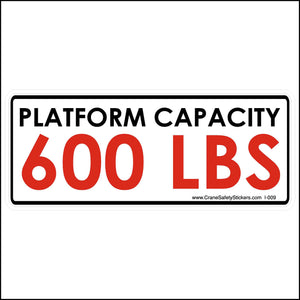 Platform Capacity Sticker size is 7 1/2 inches wide by 3 inches tall.