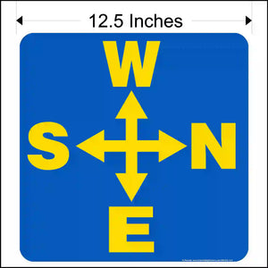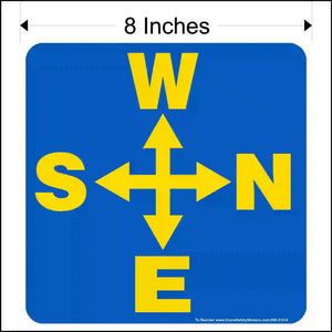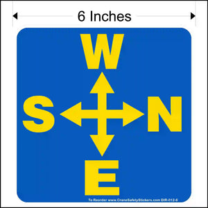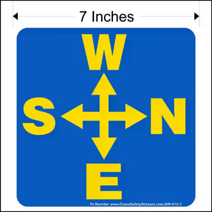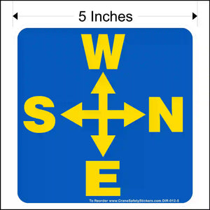 Side Mounted Overhead Crane Directional Decal Printed With West, North, East, and South Arrows.