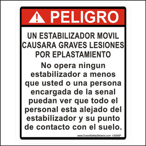 No opera ningun estabilizador a menos que usted o una persona encargada de la senal puedan ver que todo el personal esta alejado del estabilizador y su punto de contacto con el suelo.
