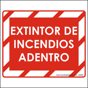 Spanish Fire Extinguisher Inside Safety Sticker size 5 1/4 inches wide by 4 1/4 inches tall.